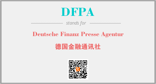 英文缩略词“DFPA”经常作为“Deutsche Finanz Presse Agentur”的英文缩写来使用,中文表示:“德国金融通讯社”。本文将详细介绍英文缩写词DFPA所代表英文单词,其对应的中文拼音、详细解释以及在英语中的流行度。此外,还有关于缩略词DFPA的分类、应用领域及相关应用示例等。