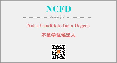 上述内容是“Not a Candidate for a Degree”作为“NCFD”的缩写,解释为“不是学位候选人”时的信息,以及英文缩略词NCFD所代表的英文单词,其对应的中文拼音、详细解释以及在英文中的流行度和相关分类、应用领域及应用示例等。