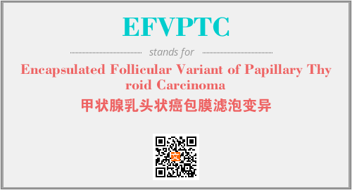 以上为Encapsulated Follicular Variant of Papillary Thyroid Carcinoma英文缩略词EFVPTC的中文解释,以及该英文缩写在英语的流行度、分类和应用领域方面的信息。