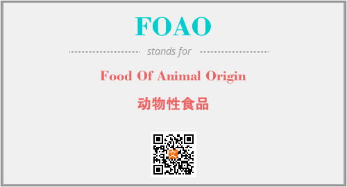 上述内容是“Food Of Animal Origin”作为“FOAO”的缩写,解释为“动物性食品”时的信息,以及英文缩略词FOAO所代表的英文单词,其对应的中文拼音、详细解释以及在英文中的流行度和相关分类、应用领域及应用示例等。
