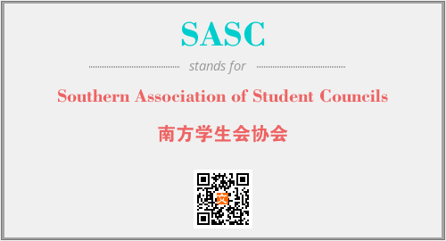 英文缩略词“SASC”经常作为“Southern Association of Student Councils”的英文缩写来使用,中文表示:“南方学生会协会”。本文将详细介绍英文缩写词SASC所代表英文单词,其对应的中文拼音、详细解释以及在英语中的流行度。此外,还有关于缩略词SASC的分类、应用领域及相关应用示例等。