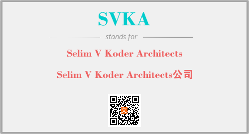 英文缩略词“SVKA”经常作为“Selim V Koder Architects”的英文缩写来使用,中文表示:“Selim V Koder Architects公司”。本文将详细介绍英文缩写词SVKA所代表英文单词,其对应的中文拼音、详细解释以及在英语中的流行度。此外,还有关于缩略词SVKA的分类、应用领域及相关应用示例等。