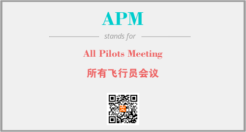 英文缩略词“APM”经常作为“All Pilots Meeting”的英文缩写来使用,中文表示:“所有飞行员会议”。本文将详细介绍英文缩写词APM所代表英文单词,其对应的中文拼音、详细解释以及在英语中的流行度。此外,还有关于缩略词APM的分类、应用领域及相关应用示例等。