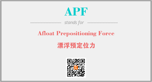 以上为Afloat Prepositioning Force英文缩略词APF的中文解释,以及该英文缩写在英语的流行度、分类和应用领域方面的信息。