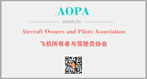 英文缩略词“AOPA”经常作为“Aircraft Owners and Pilots Association”的英文缩写来使用,中文表示:“飞机所有者与驾驶员协会”。本文将详细介绍英文缩写词AOPA所代表英文单词,其对应的中文拼音、详细解释以及在英语中的流行度。此外,还有关于缩略词AOPA的分类、应用领域及相关应用示例等。