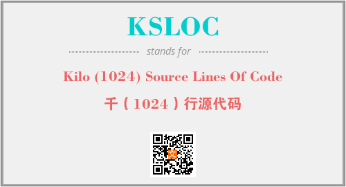 英文缩略词“KSLOC”经常作为“Kilo (1024) Source Lines Of Code”的英文缩写来使用,中文表示:“千(1024)行源代码”。本文将详细介绍英文缩写词KSLOC所代表英文单词,其对应的中文拼音、详细解释以及在英语中的流行度。此外,还有关于缩略词KSLOC的分类、应用领域及相关应用示例等。