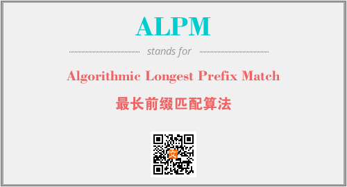 上述内容是“Algorithmic Longest Prefix Match”作为“ALPM”的缩写,解释为“最长前缀匹配算法”时的信息,以及英文缩略词ALPM所代表的英文单词,其对应的中文拼音、详细解释以及在英文中的流行度和相关分类、应用领域及应用示例等。