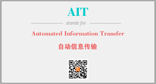 上述内容是“Automated Information Transfer”作为“AIT”的缩写,解释为“自动信息传输”时的信息,以及英文缩略词AIT所代表的英文单词,其对应的中文拼音、详细解释以及在英文中的流行度和相关分类、应用领域及应用示例等。