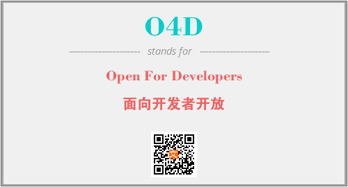 上述内容是“Open For Developers”作为“O4D”的缩写,解释为“面向开发者开放”时的信息,以及英文缩略词O4D所代表的英文单词,其对应的中文拼音、详细解释以及在英文中的流行度和相关分类、应用领域及应用示例等。