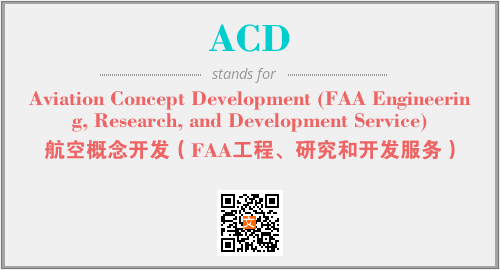 上述内容是“Aviation Concept Development (FAA Engineering, Research, and Development Service)”作为“ACD”的缩写,解释为“航空概念开发(FAA工程、研究和开发服务)”时的信息,以及英文缩略词ACD所代表的英文单词,其对应的中文拼音、详细解释以及在英文中的流行度和相关分类、应用领域及应用示例等。