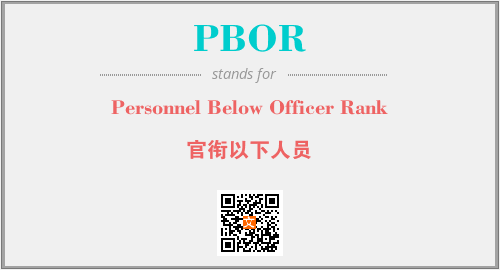 英文缩略词“PBOR”经常作为“Personnel Below Officer Rank”的英文缩写来使用,中文表示:“官衔以下人员”。本文将详细介绍英文缩写词PBOR所代表英文单词,其对应的中文拼音、详细解释以及在英语中的流行度。此外,还有关于缩略词PBOR的分类、应用领域及相关应用示例等。