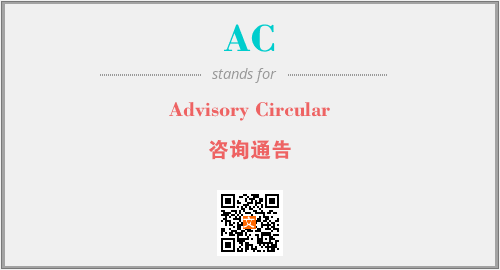 上述内容是“Advisory Circular”作为“AC”的缩写,解释为“咨询通告”时的信息,以及英文缩略词AC所代表的英文单词,其对应的中文拼音、详细解释以及在英文中的流行度和相关分类、应用领域及应用示例等。