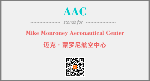 英文缩略词“AAC”经常作为“Mike Monroney Aeronautical Center”的英文缩写来使用,中文表示:“迈克·蒙罗尼航空中心”。本文将详细介绍英文缩写词AAC所代表英文单词,其对应的中文拼音、详细解释以及在英语中的流行度。此外,还有关于缩略词AAC的分类、应用领域及相关应用示例等。