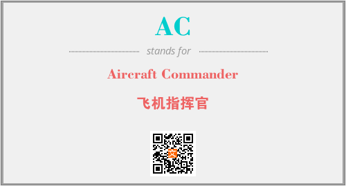 上述内容是“Aircraft Commander”作为“AC”的缩写,解释为“飞机指挥官”时的信息,以及英文缩略词AC所代表的英文单词,其对应的中文拼音、详细解释以及在英文中的流行度和相关分类、应用领域及应用示例等。