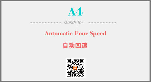 英文缩略词“A4”经常作为“Automatic Four Speed”的英文缩写来使用,中文表示:“自动四速”。本文将详细介绍英文缩写词A4所代表英文单词,其对应的中文拼音、详细解释以及在英语中的流行度。此外,还有关于缩略词A4的分类、应用领域及相关应用示例等。