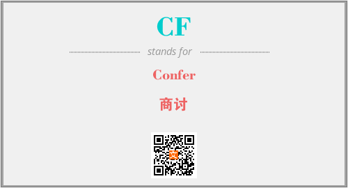上述内容是“Confer”作为“CF”的缩写,解释为“商讨”时的信息,以及英文缩略词CF所代表的英文单词,其对应的中文拼音、详细解释以及在英文中的流行度和相关分类、应用领域及应用示例等。