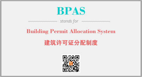 上述内容是“Building Permit Allocation System”作为“BPAS”的缩写,解释为“建筑许可证分配制度”时的信息,以及英文缩略词BPAS所代表的英文单词,其对应的中文拼音、详细解释以及在英文中的流行度和相关分类、应用领域及应用示例等。