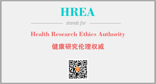 上述内容是“Health Research Ethics Authority”作为“HREA”的缩写,解释为“健康研究伦理权威”时的信息,以及英文缩略词HREA所代表的英文单词,其对应的中文拼音、详细解释以及在英文中的流行度和相关分类、应用领域及应用示例等。