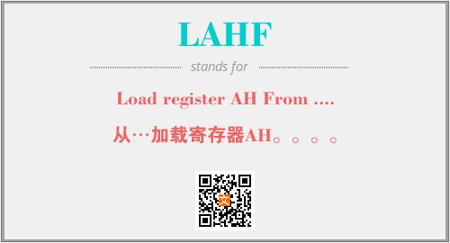 英文缩略词“LAHF”经常作为“Load register AH From ....”的英文缩写来使用,中文表示:“从…加载寄存器AH。。。。”。本文将详细介绍英文缩写词LAHF所代表英文单词,其对应的中文拼音、详细解释以及在英语中的流行度。此外,还有关于缩略词LAHF的分类、应用领域及相关应用示例等。