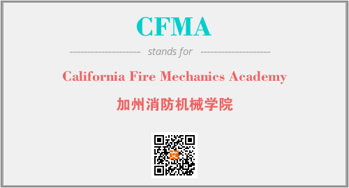 上述内容是“California Fire Mechanics Academy”作为“CFMA”的缩写,解释为“加州消防机械学院”时的信息,以及英文缩略词CFMA所代表的英文单词,其对应的中文拼音、详细解释以及在英文中的流行度和相关分类、应用领域及应用示例等。
