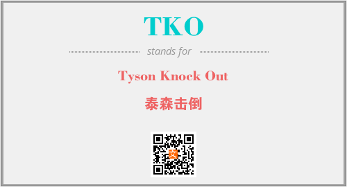 以上为Tyson Knock Out英文缩略词TKO的中文解释,以及该英文缩写在英语的流行度、分类和应用领域方面的信息。