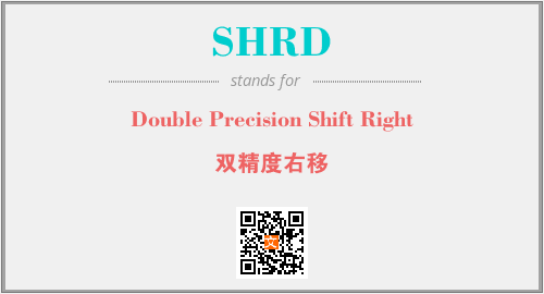 英文缩略词“SHRD”经常作为“Double Precision Shift Right”的英文缩写来使用,中文表示:“双精度右移”。本文将详细介绍英文缩写词SHRD所代表英文单词,其对应的中文拼音、详细解释以及在英语中的流行度。此外,还有关于缩略词SHRD的分类、应用领域及相关应用示例等。