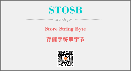 英文缩略词“STOSB”经常作为“Store String Byte”的英文缩写来使用,中文表示:“存储字符串字节”。本文将详细介绍英文缩写词STOSB所代表英文单词,其对应的中文拼音、详细解释以及在英语中的流行度。此外,还有关于缩略词STOSB的分类、应用领域及相关应用示例等。