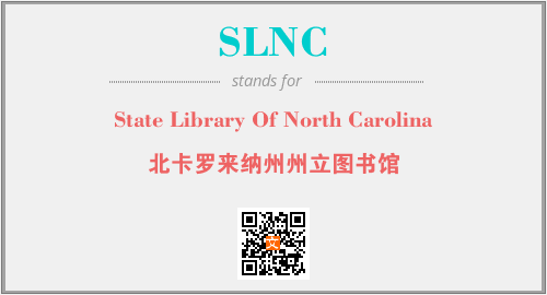 上述内容是“State Library Of North Carolina”作为“SLNC”的缩写,解释为“北卡罗来纳州州立图书馆”时的信息,以及英文缩略词SLNC所代表的英文单词,其对应的中文拼音、详细解释以及在英文中的流行度和相关分类、应用领域及应用示例等。