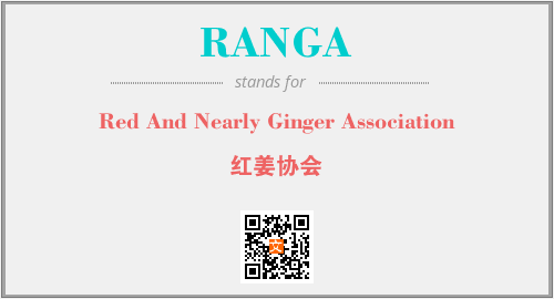 英文缩略词“RANGA”经常作为“Red And Nearly Ginger Association”的英文缩写来使用,中文表示:“红姜协会”。本文将详细介绍英文缩写词RANGA所代表英文单词,其对应的中文拼音、详细解释以及在英语中的流行度。此外,还有关于缩略词RANGA的分类、应用领域及相关应用示例等。