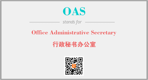 英文缩略词“OAS”经常作为“Office Administrative Secretary”的英文缩写来使用,中文表示:“行政秘书办公室”。本文将详细介绍英文缩写词OAS所代表英文单词,其对应的中文拼音、详细解释以及在英语中的流行度。此外,还有关于缩略词OAS的分类、应用领域及相关应用示例等。
