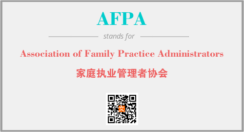 英文缩略词“AFPA”经常作为“Association of Family Practice Administrators”的英文缩写来使用,中文表示:“家庭执业管理者协会”。本文将详细介绍英文缩写词AFPA所代表英文单词,其对应的中文拼音、详细解释以及在英语中的流行度。此外,还有关于缩略词AFPA的分类、应用领域及相关应用示例等。