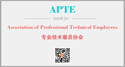 上述内容是“Association of Professional Technical Employees”作为“APTE”的缩写,解释为“专业技术雇员协会”时的信息,以及英文缩略词APTE所代表的英文单词,其对应的中文拼音、详细解释以及在英文中的流行度和相关分类、应用领域及应用示例等。