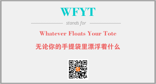 以上为Whatever Floats Your Tote英文缩略词WFYT的中文解释,以及该英文缩写在英语的流行度、分类和应用领域方面的信息。