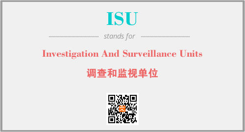 以上为Investigation And Surveillance Units英文缩略词ISU的中文解释,以及该英文缩写在英语的流行度、分类和应用领域方面的信息。