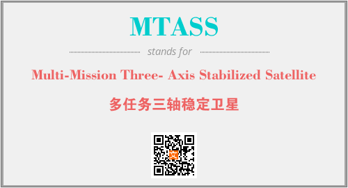 上述内容是“Multi-Mission Three- Axis Stabilized Satellite”作为“MTASS”的缩写,解释为“多任务三轴稳定卫星”时的信息,以及英文缩略词MTASS所代表的英文单词,其对应的中文拼音、详细解释以及在英文中的流行度和相关分类、应用领域及应用示例等。