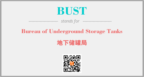 英文缩略词“BUST”经常作为“Bureau of Underground Storage Tanks”的英文缩写来使用,中文表示:“地下储罐局”。本文将详细介绍英文缩写词BUST所代表英文单词,其对应的中文拼音、详细解释以及在英语中的流行度。此外,还有关于缩略词BUST的分类、应用领域及相关应用示例等。