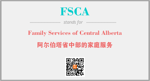 上述内容是“Family Services of Central Alberta”作为“FSCA”的缩写,解释为“阿尔伯塔省中部的家庭服务”时的信息,以及英文缩略词FSCA所代表的英文单词,其对应的中文拼音、详细解释以及在英文中的流行度和相关分类、应用领域及应用示例等。