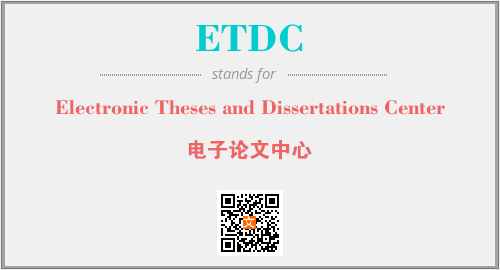以上为Electronic Theses and Dissertations Center英文缩略词ETDC的中文解释,以及该英文缩写在英语的流行度、分类和应用领域方面的信息。