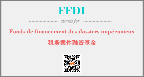 英文缩略词“FFDI”经常作为“Fonds de financement des dossiers impécunieux”的英文缩写来使用,中文表示:“税务案件融资基金”。本文将详细介绍英文缩写词FFDI所代表英文单词,其对应的中文拼音、详细解释以及在英语中的流行度。此外,还有关于缩略词FFDI的分类、应用领域及相关应用示例等。