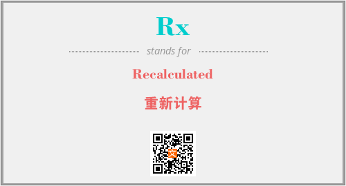 上述内容是“Recalculated”作为“Rx”的缩写,解释为“重新计算”时的信息,以及英文缩略词Rx所代表的英文单词,其对应的中文拼音、详细解释以及在英文中的流行度和相关分类、应用领域及应用示例等。