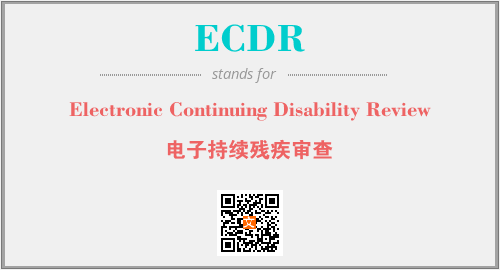 上述内容是“Electronic Continuing Disability Review”作为“ECDR”的缩写,解释为“电子持续残疾审查”时的信息,以及英文缩略词ECDR所代表的英文单词,其对应的中文拼音、详细解释以及在英文中的流行度和相关分类、应用领域及应用示例等。