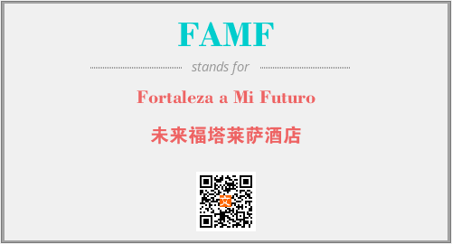 上述内容是“Fortaleza a Mi Futuro”作为“FAMF”的缩写,解释为“未来福塔莱萨酒店”时的信息,以及英文缩略词FAMF所代表的英文单词,其对应的中文拼音、详细解释以及在英文中的流行度和相关分类、应用领域及应用示例等。