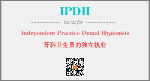 英文缩略词“IPDH”经常作为“Independent Practice Dental Hygienists”的英文缩写来使用,中文表示:“牙科卫生员的独立执业”。本文将详细介绍英文缩写词IPDH所代表英文单词,其对应的中文拼音、详细解释以及在英语中的流行度。此外,还有关于缩略词IPDH的分类、应用领域及相关应用示例等。