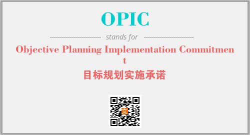 上述内容是“Objective Planning Implementation Commitment”作为“OPIC”的缩写,解释为“目标规划实施承诺”时的信息,以及英文缩略词OPIC所代表的英文单词,其对应的中文拼音、详细解释以及在英文中的流行度和相关分类、应用领域及应用示例等。