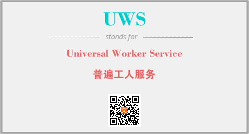 英文缩略词“UWS”经常作为“Universal Worker Service”的英文缩写来使用,中文表示:“普遍工人服务”。本文将详细介绍英文缩写词UWS所代表英文单词,其对应的中文拼音、详细解释以及在英语中的流行度。此外,还有关于缩略词UWS的分类、应用领域及相关应用示例等。
