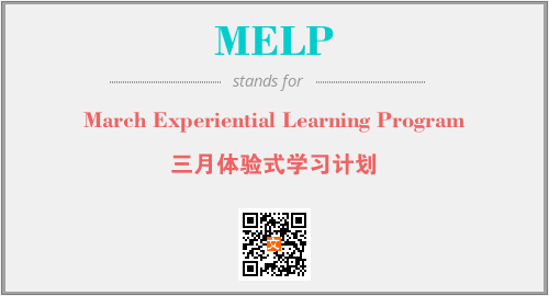 以上为March Experiential Learning Program英文缩略词MELP的中文解释,以及该英文缩写在英语的流行度、分类和应用领域方面的信息。