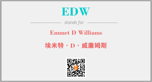 上述内容是“Emmet D Williams”作为“EDW”的缩写,解释为“埃米特·D·威廉姆斯”时的信息,以及英文缩略词EDW所代表的英文单词,其对应的中文拼音、详细解释以及在英文中的流行度和相关分类、应用领域及应用示例等。