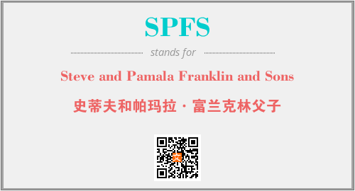 上述内容是“Steve and Pamala Franklin and Sons”作为“SPFS”的缩写,解释为“史蒂夫和帕玛拉·富兰克林父子”时的信息,以及英文缩略词SPFS所代表的英文单词,其对应的中文拼音、详细解释以及在英文中的流行度和相关分类、应用领域及应用示例等。