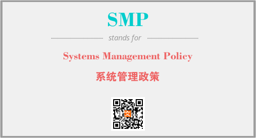上述内容是“Systems Management Policy”作为“SMP”的缩写,解释为“系统管理政策”时的信息,以及英文缩略词SMP所代表的英文单词,其对应的中文拼音、详细解释以及在英文中的流行度和相关分类、应用领域及应用示例等。