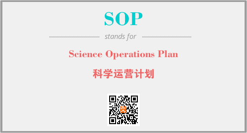 英文缩略词“SOP”经常作为“Science Operations Plan”的英文缩写来使用,中文表示:“科学运营计划”。本文将详细介绍英文缩写词SOP所代表英文单词,其对应的中文拼音、详细解释以及在英语中的流行度。此外,还有关于缩略词SOP的分类、应用领域及相关应用示例等。